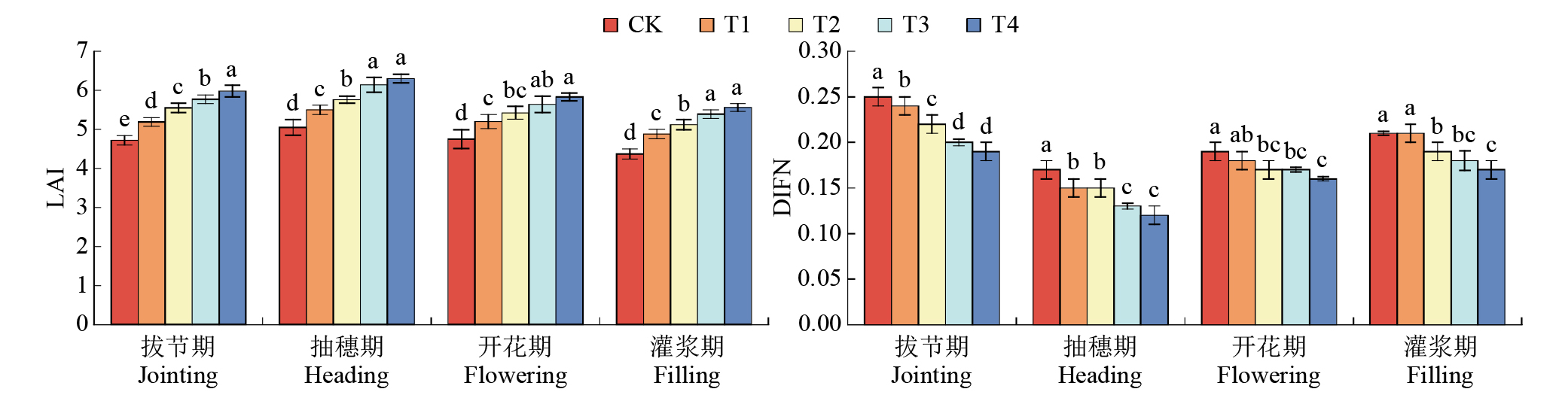 摘要: 以黄淮海冬小麦生产区的豫农916为试验材料,设置3种行距配置和2种种植密度,探究不同行距配置和种植密度对小麦生长、群体结构、光合特性和产量的影响。结果显示,在群体结构方面,相较于20 cm等行距处理,13 cm+18 cm加密处理在拔节期和成熟期单株分蘖数和总分蘖数显著增加,有效穗数明显提升。在光合特性方面,行距相同的情况下,叶绿素相对含量随着密度的增加而降低;行距优化配置处理可提高小麦的净光合速率。在冠层结构方面,13 cm+18 cm加密处理的叶面积指数显著高于20 cm等行距处理和15 cm+25 cm宽窄行正常处理,且透光率更合理。在产量和干物质积累量方面,相较于等行距常规密度处理,不同宽窄行和加密处理均显著提高了冬小麦产量和干物质积累量。在氮素利用率方面,13 cm+18 cm加密处理的氮素利用率较传统等行距种植处理提高了18.31%,籽粒氮收获指数和氮转运效率也得到有效提升。本研究推荐13 cm+18 cm宽窄行加密种植为黄淮海南部区域小麦群体的优化组合模式,该模式通过进一步优化群体结构提升小麦产量。