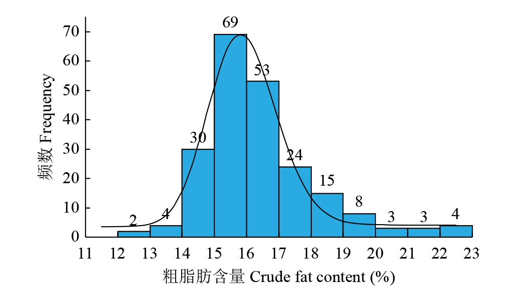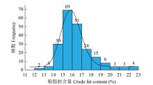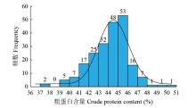 蛋白质和脂肪含量是影响黑豆营养品质的重要因素。为了建立黑豆中粗蛋白和粗脂肪含量的近红外快速检测模型,采集200份具有代表性的地方黑豆种质资源为研究材料,利用近红外漫反射光谱仪,结合化学法测定黑豆中粗蛋白和粗脂肪含量,并进行统计学分析。结果表明,采用一阶导数+MSC、一阶导数+矢量归一化光谱预处理,分别建立粗蛋白、粗脂肪含量的近红外快速检测模型。该模型的交叉验证决定系数(R2)分别为0.907和0.873,误差分别为0.477和0.420,表明模型准确可靠,可代替化学分析法鉴定黑豆粗蛋白和粗脂肪含量。对200份不同产地黑豆种质资源进行分析评价,粗蛋白含量最大值为50.11%,最小值为37.00%,粗脂肪含量最大值为22.62%,最小值为12.06%。最终筛选出79份高蛋白和4份高油黑豆品种资源,为优质黑豆资源的筛选和品种选育奠定了基础。