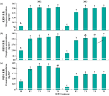 摘要: 于2022-2023年连续2年在贵州省遵义市开展大田定位试验,设不施肥(T1),农民习惯施肥、基施普通复合肥900 kg/hm2、穗期追施纯氮45 kg/hm2(T2),基施Ⅰ型肥料1800 kg/hm2、不追肥(T3),基施Ⅱ型肥料3000 kg/hm2、不追肥(T4)和基施Ⅲ型肥料1500 kg/hm2、穗期追施纯氮90 kg/hm2(T5)5个处理,研究不同酒糟有机无机复混肥对高粱产量、品质、养分吸收及利用的影响。结果表明,与T2处理相比,T3、T4和T5处理高粱产量平均分别提高76.57、107.57和164.66 kg/hm2,总生物量平均分别提高328.40、358.98和463.54 kg/hm2。T3~T5处理高粱支链淀粉含量较T2处理平均增加1.13%~7.02%,单宁含量增加1.63%~4.35%。与T2处理相比,T3、T4和T5处理氮素累积量平均分别提高7.27、6.22和9.07 kg/hm2,磷素累积量平均分别提高1.27、1.72和2.47 kg/hm2,钾素累积量平均分别提高13.35、12.38和9.15 kg/hm2。高粱收获后,T3、T4和T5处理均能维持或提高土壤养分含量。经济效益方面,T5处理的2年平均净收益为45 189.7元/hm2,产投比为2.679,高于T2、T3和T4处理。综上,采用一次性基施Ⅰ型、Ⅱ型和基施Ⅲ型+穗期追氮肥施肥方式的高粱产量、养分吸收利用均优于农民习惯施肥,建议当劳动力不足时,优先选择前者,当劳动力充足时,可选择后者。