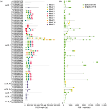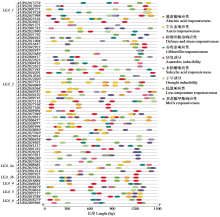 为分析藜麦LEA基因家族的理化性质、染色体分布、基因结构、蛋白保守基序、物种间共线性及表达模式,利用生物信息学方法对藜麦LEAs进行全基因组鉴定。结果显示,在藜麦基因组中共鉴定到64个LEA基因家族成员,分属7个亚组,分布于13条染色体上,同一亚组的成员具有相似的基因结构和保守基序。种内共线性分析发现,64个LEA基因存在20个重复基因对;种间共线性分析发现,其与豆科植物之间具有高度的进化保守性。LEA基因的启动子区域存在多种激素和非生物胁迫相关的作用元件,其中46个LEA基因受盐胁迫诱导表达,通过GO注释发现主要参与解剖结构发育、根系发育、防御响应和生殖系统发育等生物学过程,各亚组基因发挥不同作用以提升藜麦盐胁迫耐受性。