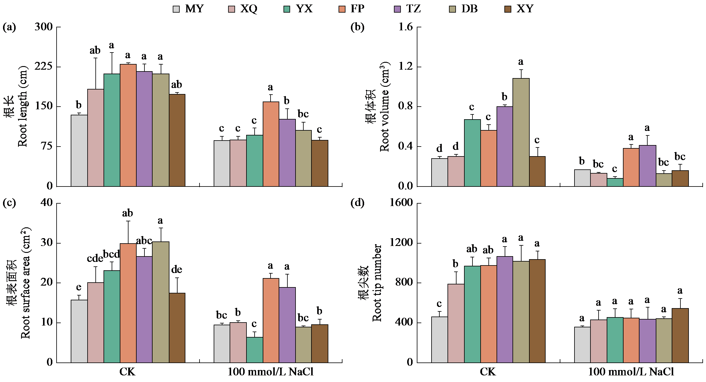 探究不同冬瓜品种间盐胁迫差异响应并对其进行耐盐性综合评价,对于发掘耐盐性冬瓜品种、提高冬瓜在盐渍土的生产能力具有重要意义。以NaCl溶液模拟胁迫环境,对7个冬瓜品种进行了萌发期和苗期相关生理指标的测定及耐盐性综合评价。结果表明,100 mmol/L NaCl处理可以作为冬瓜耐盐性鉴定的适宜盐浓度。冬瓜品种间发芽势、发芽率、株高、根长、光化学猝灭系数、电子传递速率、超氧化物歧化酶和过氧化物酶活性等指标在盐胁迫下存在显著差异。通过主成分分析和综合评价值(D值)计算,发现粉皮冬瓜和铁柱二号耐盐性较强,芋香小冬瓜耐盐性较弱。采用相关性分析,筛选出发芽指数、胚根长、株高、根长、最大量子产量和抗氧化酶活性可作为评价冬瓜耐盐性的相关指标。