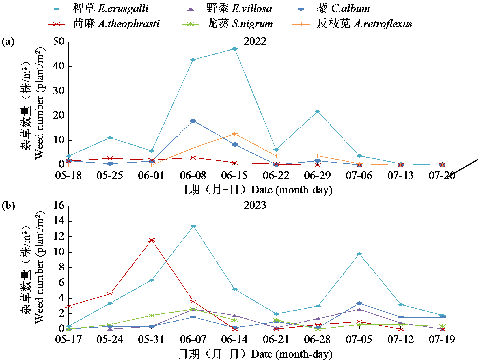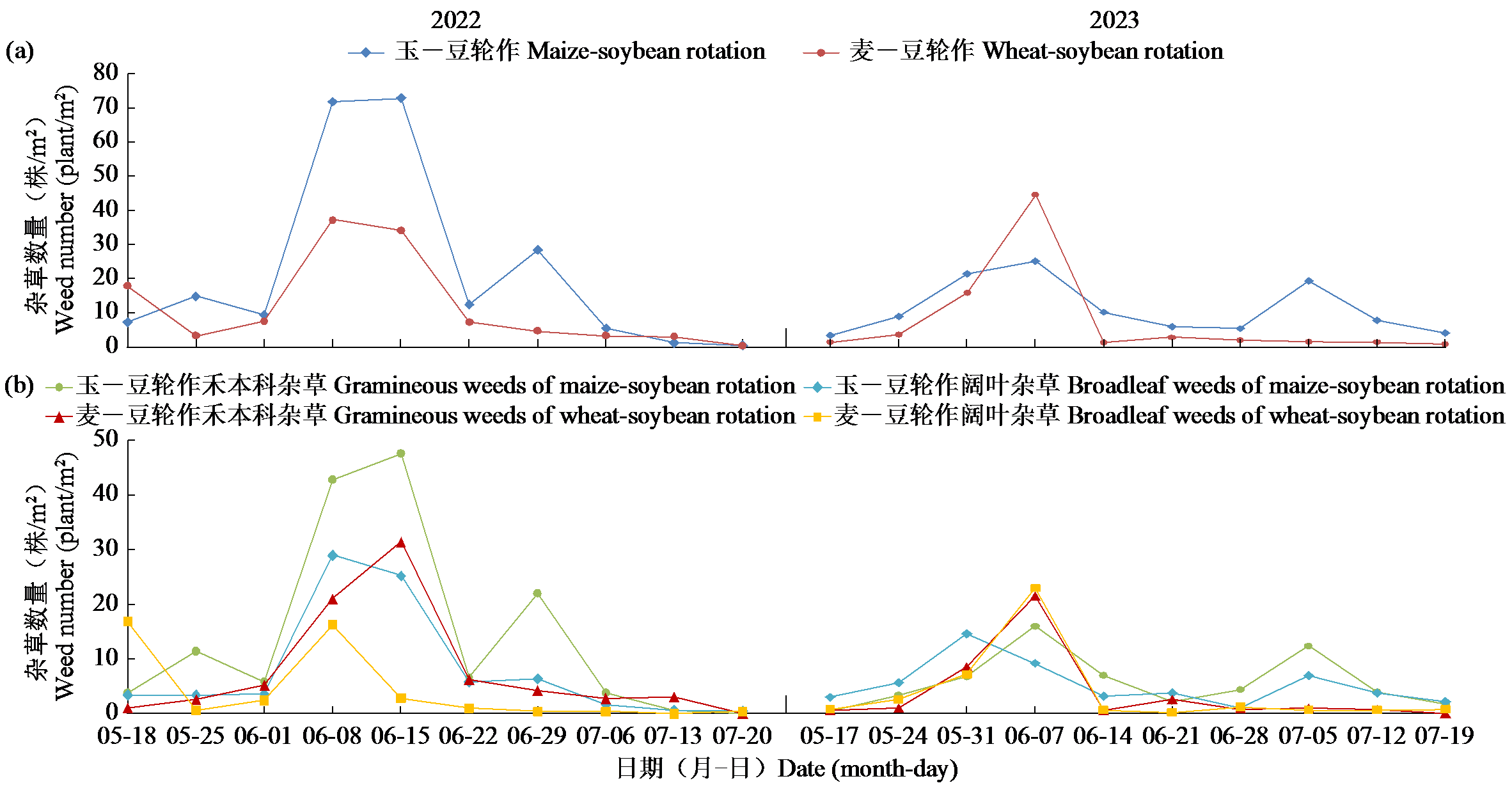 玉―豆轮作模式下大豆田优势种杂草发生动态