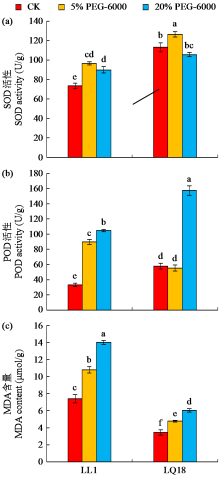 干旱胁迫对2个品种(系)藜麦幼苗SOD、POD活性及MDA含量的影响