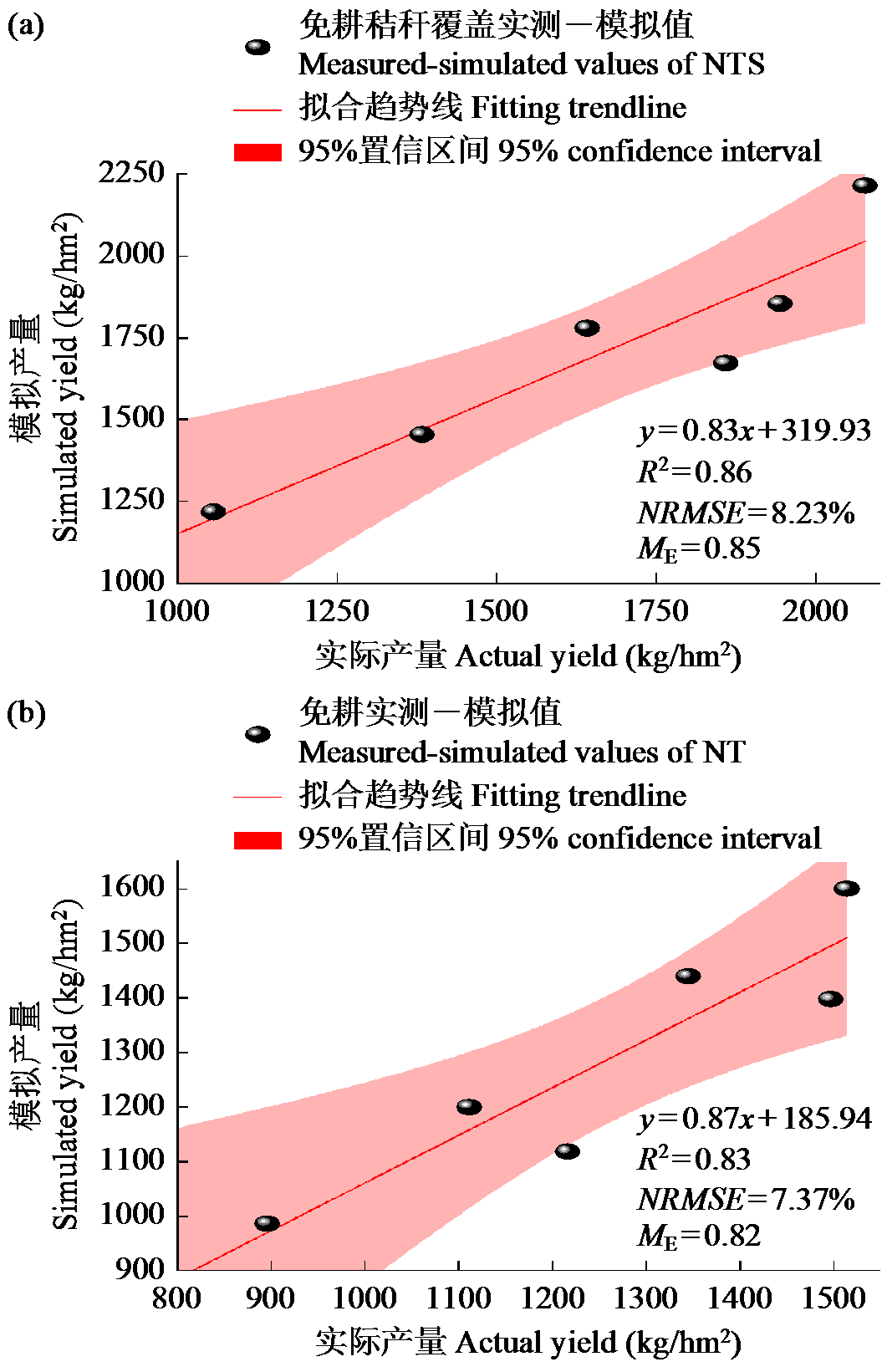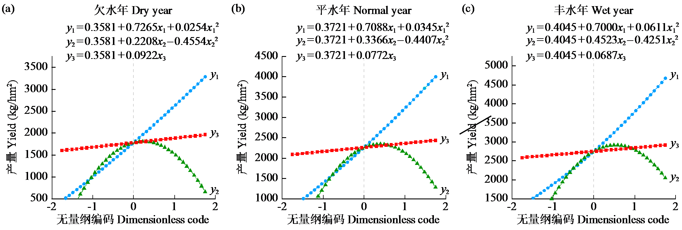 摘要: 为探究不同降水年型下降水量、氮肥与秸秆覆盖耦合变化对旱地春小麦产量的影响机制,利用2013-2018年免耕及免耕秸秆覆盖下的春小麦产量、土壤及气象数据校验APSIM模型。结合1970-2022年历史数据驱动校验后的模型,模拟5×5×5组降水变化量(±20%、±10%、0%)、施氮量(0.0、52.5、105.0、157.5和210.0 kg/hm2)和秸秆覆盖量(0、1125、2250、3375和4500 kg/hm2)组合下的产量,分析不同单因素下各年型产量变异系数,并采用二次正交多项式逐步回归、单因素分析和交互效应研究各因素对产量的影响。结果表明,APSIM模型模拟效果良好,2种耕作方式下实测与模拟产量R2均大于0.8,NRMSE均小于10%,ME均大于0.8。欠水年、平水年和丰水年下,三因素单独及交互作用均正向影响产量,效应强度为降水变化量>施氮量>秸秆覆盖量。在当年自然降水基础上,各年型最优产量及耕作措施为:欠水年实现最优产量2203.65 kg/hm2,需增加20%降水量、施用153.13 kg/hm2氮肥、覆盖4500 kg/hm2秸秆;平水年实现最优产量2838.77 kg/hm2,需增加20%降水量、施用170.76 kg/hm2氮肥、覆盖4500 kg/hm2秸秆;丰水年实现最优产量3447.11 kg/hm2,需增加20%降水量、施用188.58 kg/hm2氮肥、覆盖4500 kg/hm2秸秆。综上,在模拟试验设置范围内,免耕覆盖下增加降水量、施氮量和秸秆覆盖量均可提升春小麦模拟产量,但影响程度因降水年型而异,当地春小麦宜按年型制定水肥覆盖方案以实现高产与稳产。