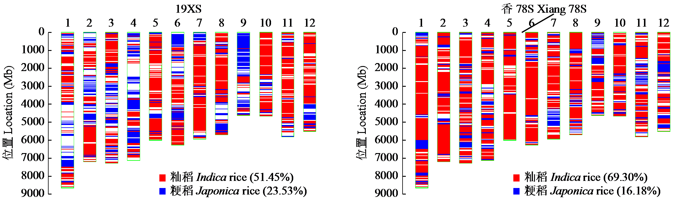 摘要: 光温敏不育系是杂交水稻育种的宝贵资源,以新发现的水稻光温敏不育系19XS为材料,对其育种过程、农艺性状、育性转换特性、杂交后代育性及基因型进行分析。结果表明,在武汉地区(5月初播种),19XS从8月初抽穗到9月底保持稳定不育状态,约45 d以上;10月3日后开始出现少量育性转换。19XS在海南地区(11月下旬播种,3月初抽穗)通常表现为可育,具有光温敏育性转换特征。遗传分析表明,19XS是一个新的隐性不育系,其不育性不受遗传背景干扰。19XS与香78S杂交后代(19XS/香78S)表现出优良的农艺性状,包括株型紧凑、穗大粒多以及结实率高等。基因芯片检测结果显示,19XS和19XS/香78S均含有温敏雄性不育基因TMS5。研究结果为杂交水稻育种提供了新的材料基础。