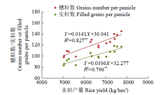 22.72%,且3Y田块显著高于1Y和2Y田块。种植年限2Y和3Y田块水稻产量相比1Y田块分别增加了26.33%和42.89%(P<0.05)。相关性分析表明,水稻产量与穗粒数呈极显著正相关(P<0.01)。因此得出,滩涂养殖复垦区种稻短期内可以改善土壤质量,特别是有机碳和水溶性有机碳含量。同时,滩涂水稻产量提高主要是穗粒数增加引起的。