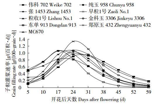玉米子粒灌浆速率的动态变化