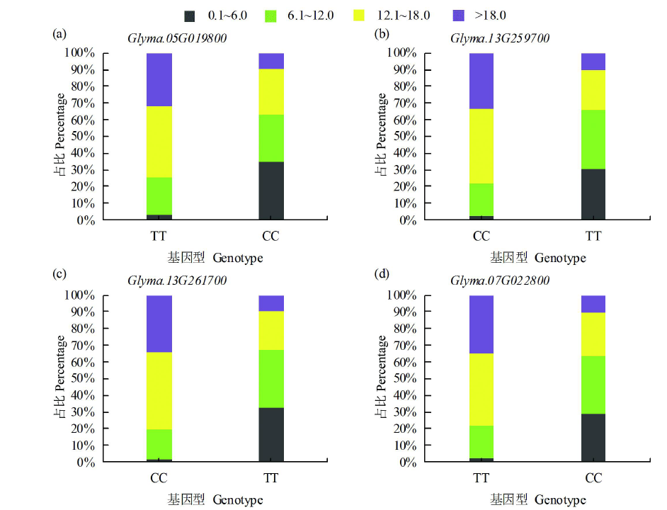 | Fig.4 Distribution of soybean accessions in different 100-seed weight phenotypic ranges |