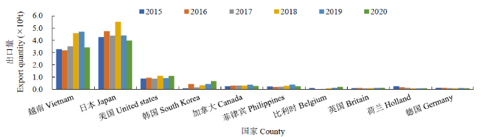 2015-2020年我国绿豆主要出口国及出口量