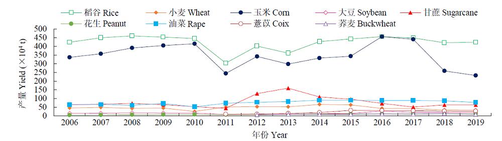 | Fig.1 The yield of main crops in Guizhou province from 2006 to 2019 |