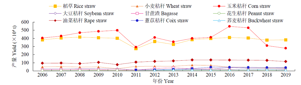 | Fig.2 Estimated yields of main crop by-products in Guizhou province from 2006 to 2019 |
