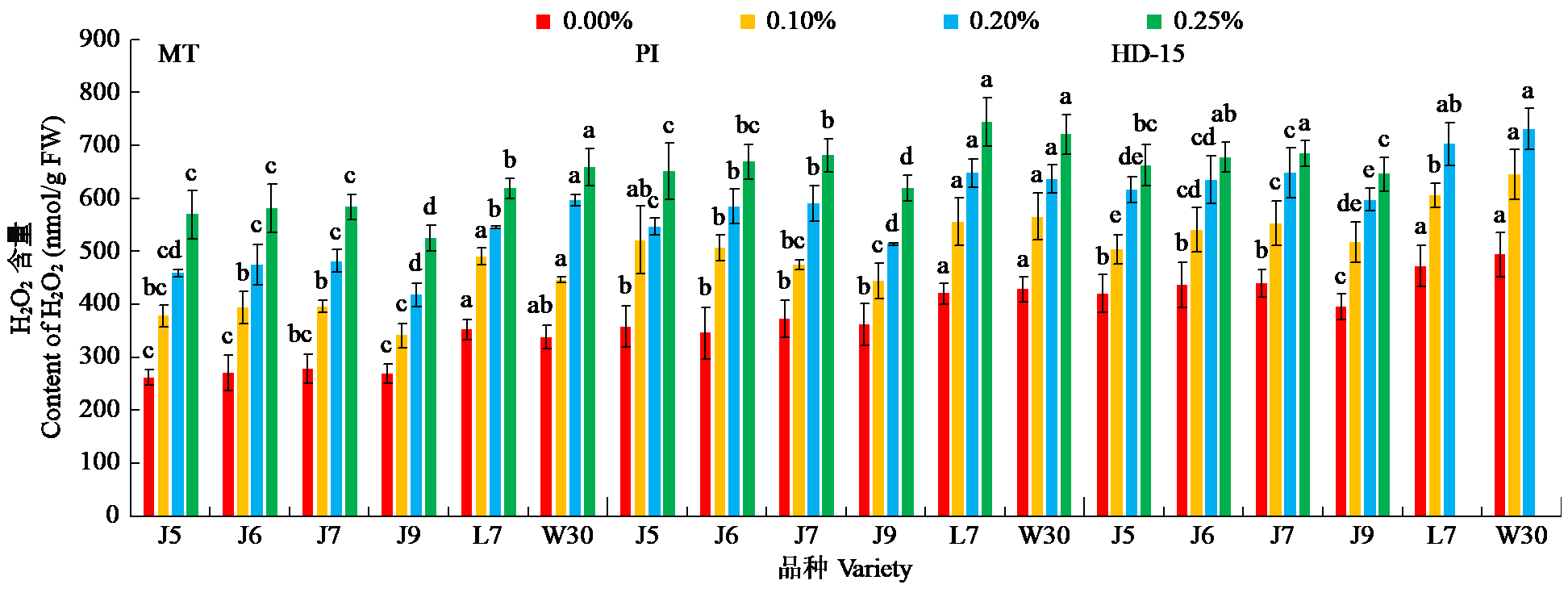 | Fig.3 Effects of salt stress on H2O2 content in rice roots during main growth periods |
