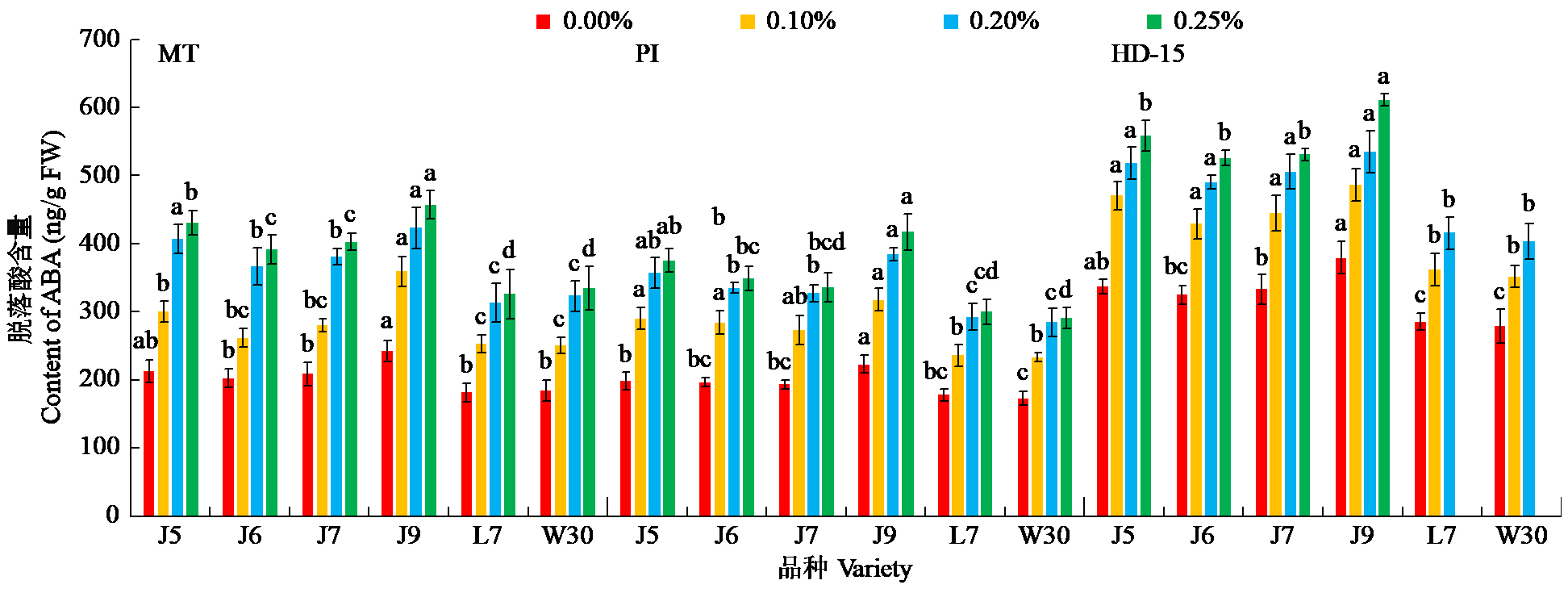| 图4 盐胁迫对水稻主要生育时期根系ABA含量的影响 |