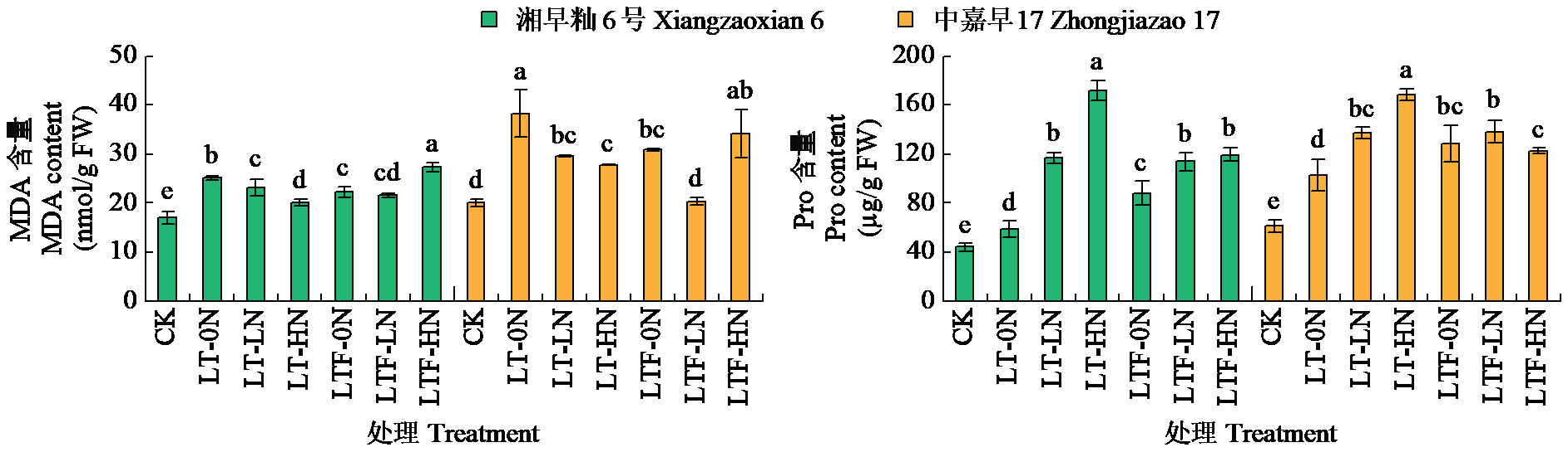 | 图2 水氮耦合对直播早籼稻苗期低温冷害膜脂过氧化物的影响 |
