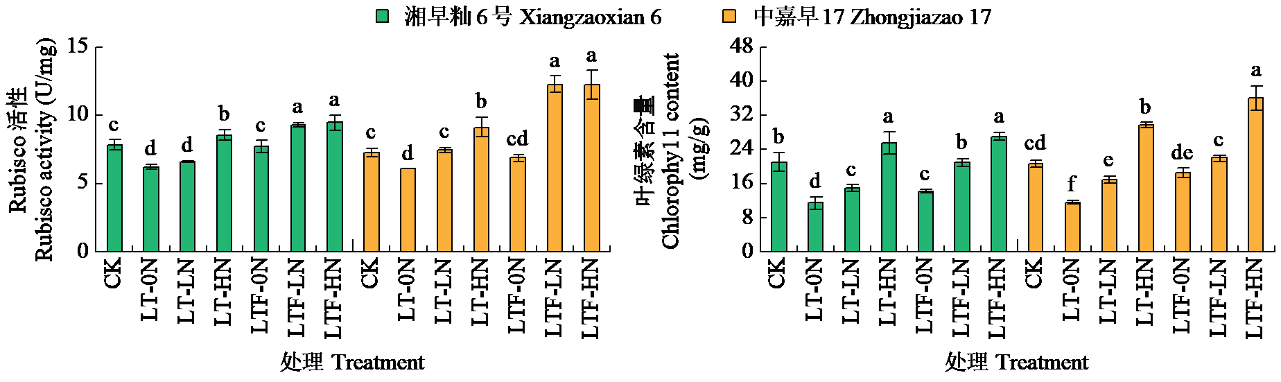 | 图4 水氮耦合对直播早籼稻苗期低温冷害光合酶活性的影响 |