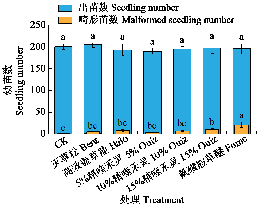 | 图2 茎叶期除草剂对蚕豆出苗及致畸性的影响 |