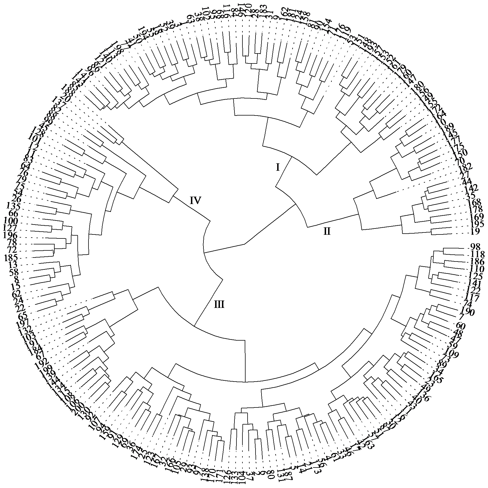 | Fig.2 Cluster analysis of 200 foxtail millet registered varieties |