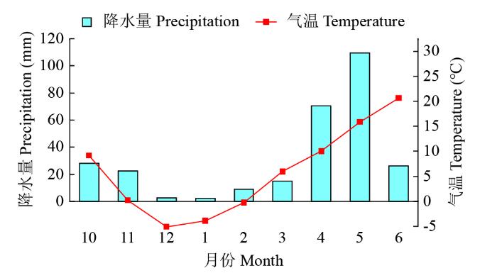 2022-2023年冬小麦生长季月均降水量及温度变化