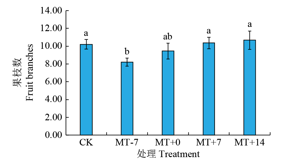 | Fig.4 Effects of different treatments on fruit branches in cotton |