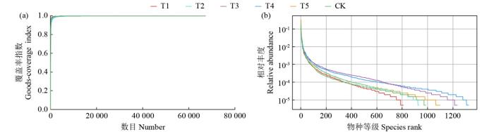 使用QIIME2 2021等软件对原始数据进行拼接和去嵌合体等步骤,以100%相似度聚类,通过DADA2平台质控后产生的每个去重的序列称为ASVs。基于ASV的丰度及注释信息,对每个样本在不同分类水平上序列的比例进行统计,使用Perl(V5.28.3)circos软件(V0.69-6)绘制不同分类水平物种圈图。土壤微生物群落丰度图使用R(V3.6.2)对组间进行t-检验分析,使用ggplot2程序包绘制差异物种箱线图。基于ASV相对丰度,使用软件LEfSe(