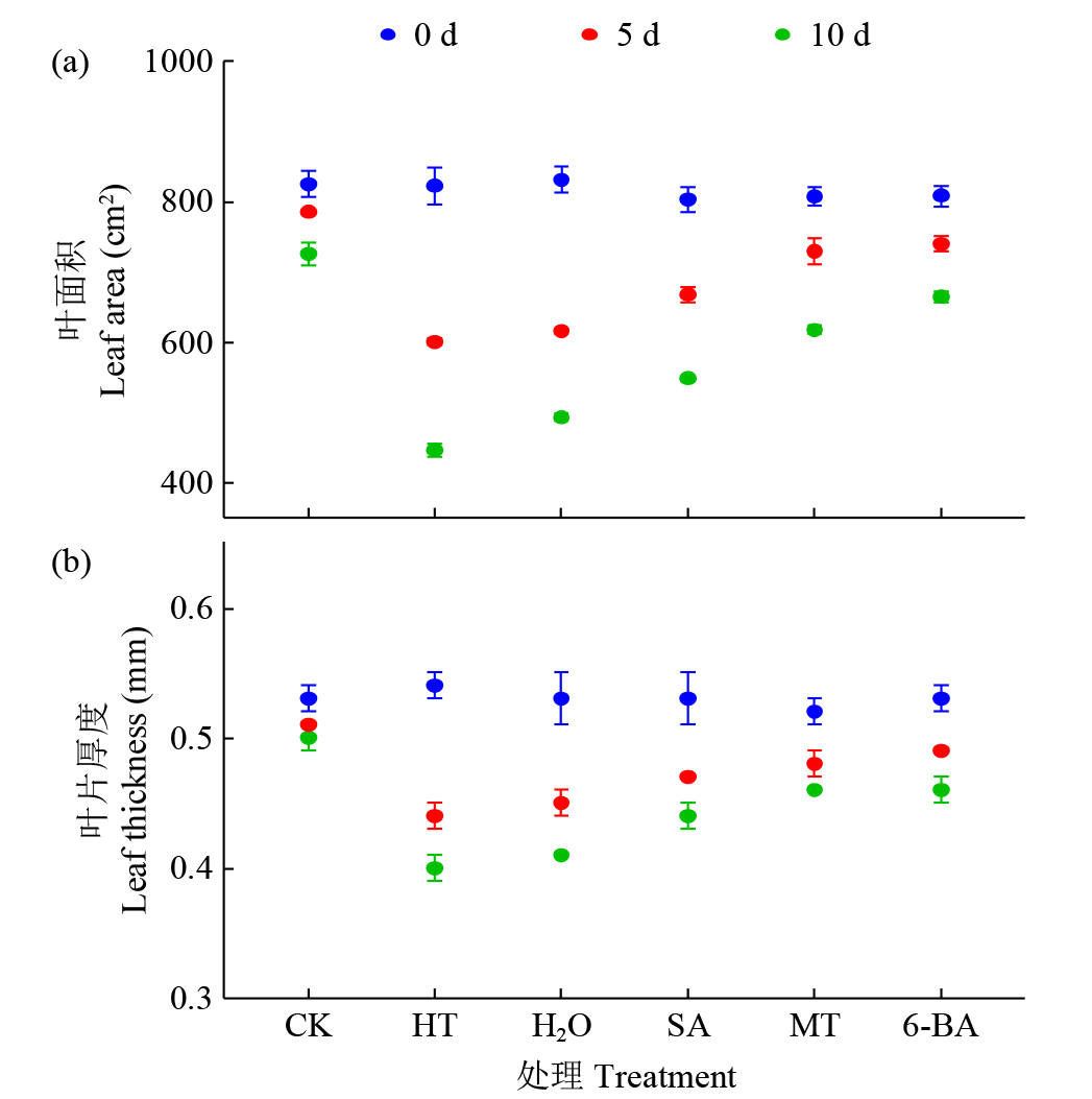 | 图2 不同外源物质对高温胁迫下烤烟叶片性状的影响 |