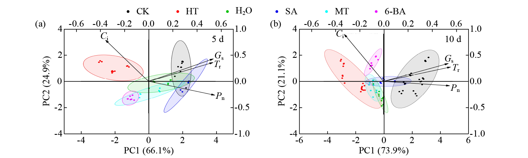 | 图6 高温胁迫下烤烟叶片光合作用相关指标的主成分分析 |