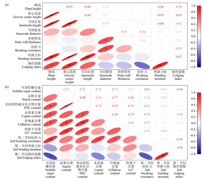 水稻茎秆倒伏指标相关性分析