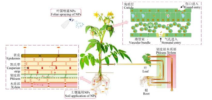 作物通过叶片的气孔、发达的根系或间接通过木质部、韧皮部与外界环境进行物质交换。NPs因其独特的小体积可以被植物叶和根吸收,其在植物中的吸收、转运和积累取决于植物种类、细胞的生理结构、土壤环境以及纳米颗粒的性质(如粒径、形状、电荷、浓度、表面功能化及其稳定性)[10]。