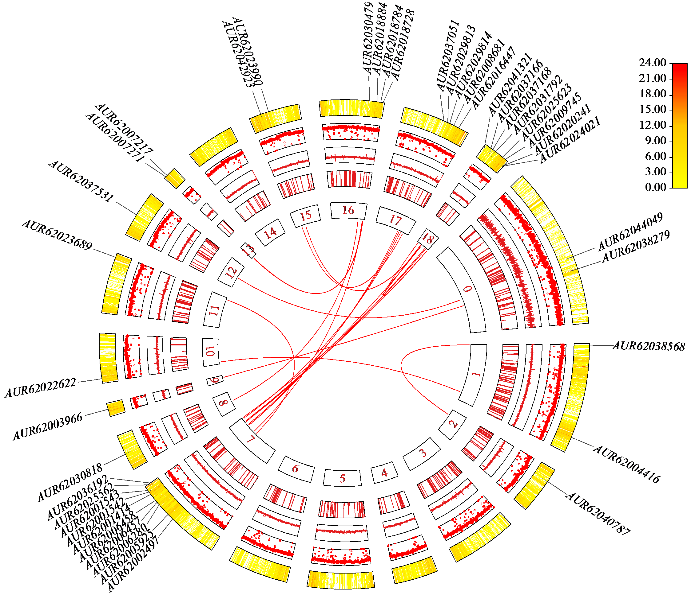 | Fig.4 Collinear distribution of LEA gene family members in quinoa Numbers in inner circle indicate chromosome number. |