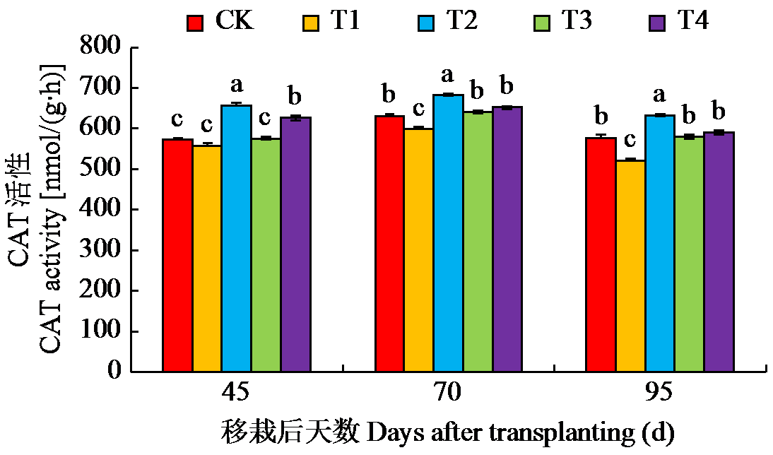 | Fig.2 Effects of chemical fertilizer reduction combined with organic fertilizer on soil CAT activity |