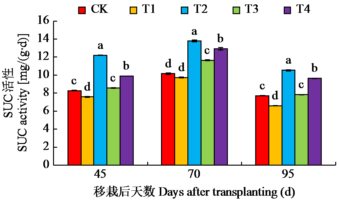 | Fig.4 Effects of chemical fertilizer reduction combined with organic fertilizer on soil SUC activity |