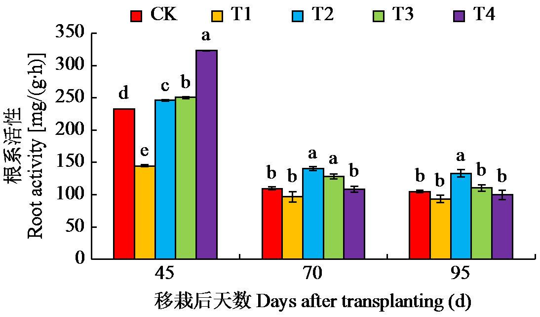 | Fig.6 Effects of chemical fertilizer reduction combined with organic fertilizer on the root activity of flue-cured tobacco |