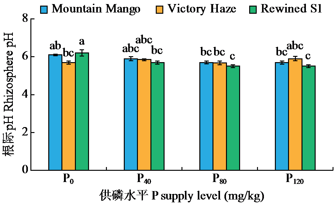 | 图3 品种和供磷水平的交互作用对根际pH的影响 |