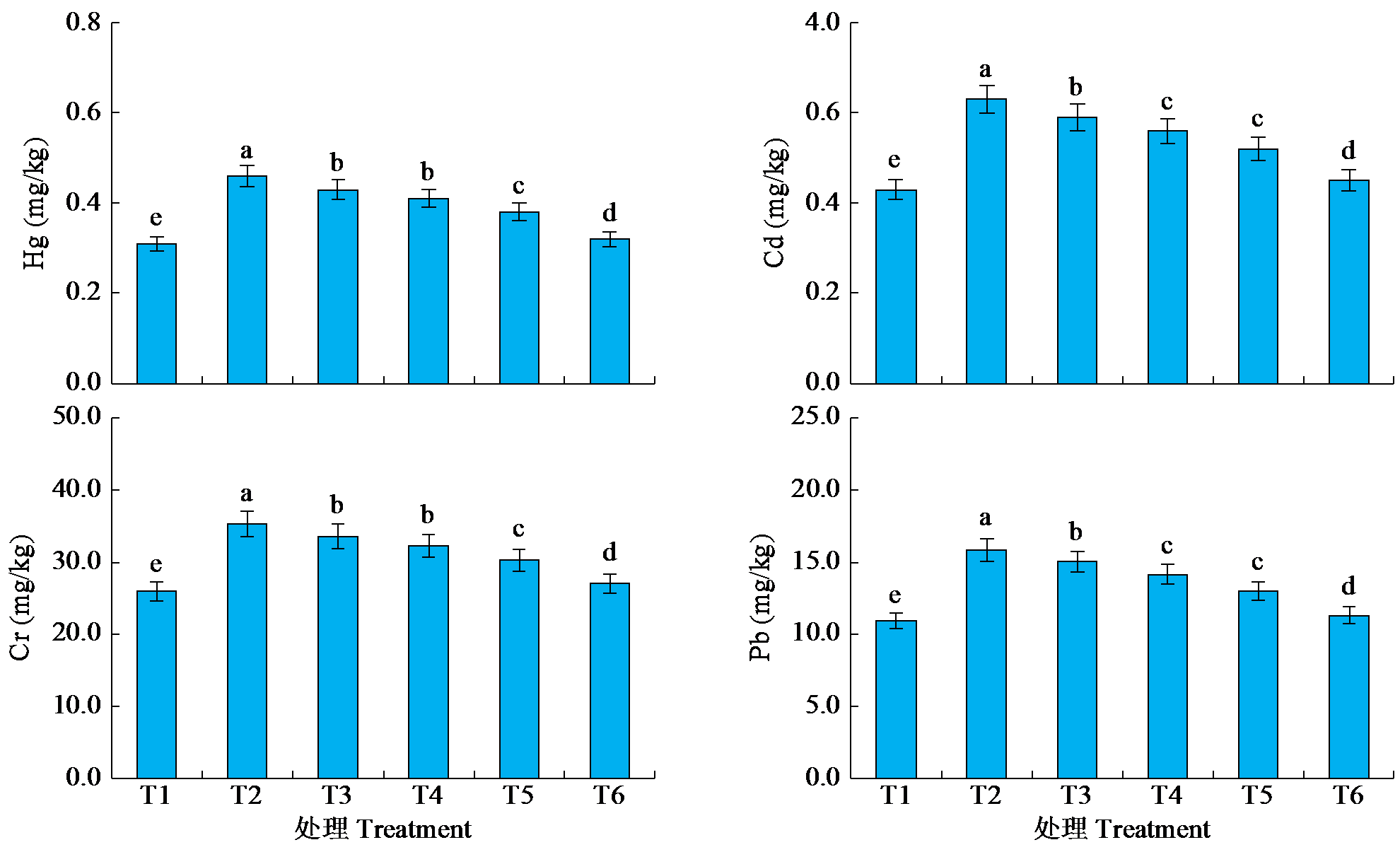 | 图4 不同处理对土壤重金属含量的影响 |
