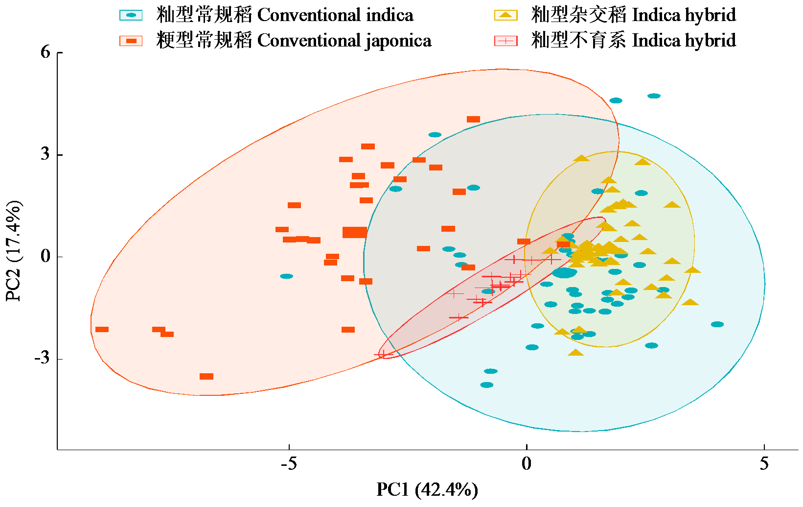 | 图2 不同水稻品种的主成分分析 |
