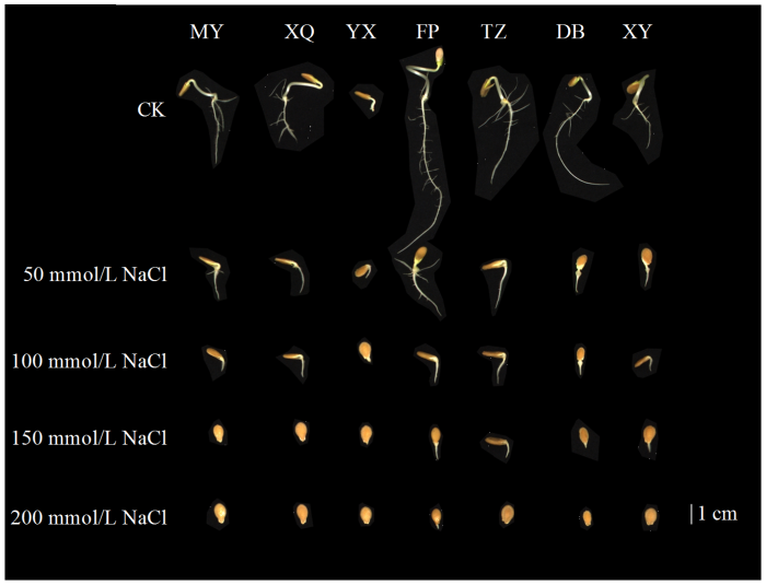 Differential response of seed germination to different NaCl concentrations among wax gourd varieties