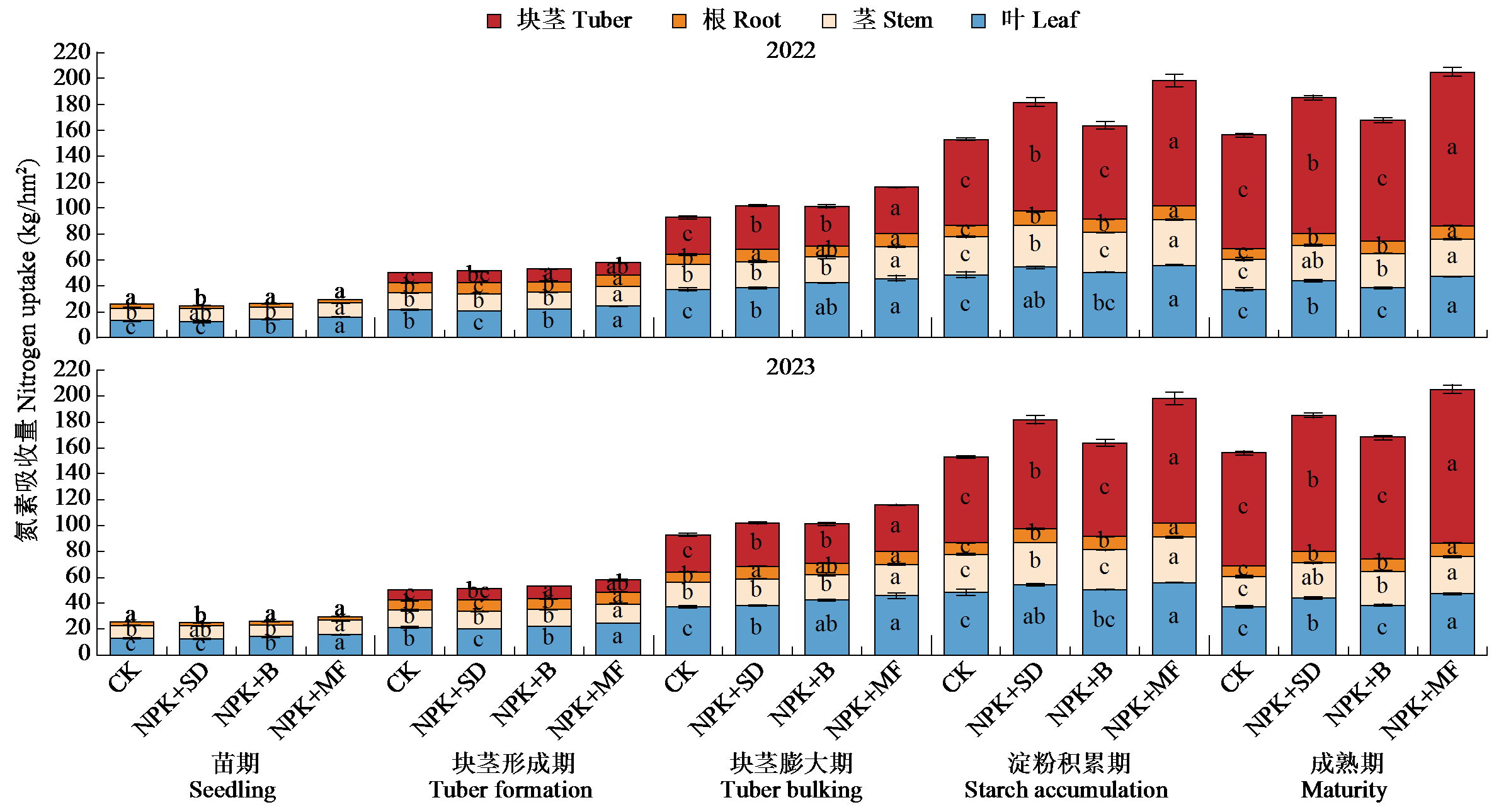| 图5 马铃薯各部分氮素吸收量 |