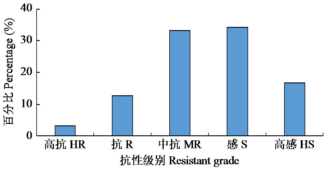 | Fig.3 Percentage of common bean germplasms with different resistant grades |