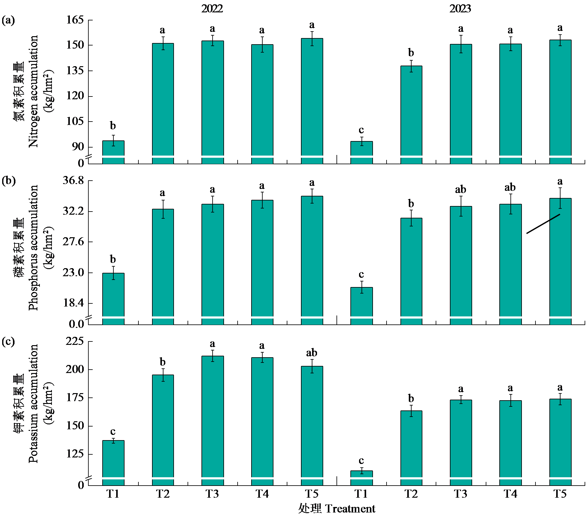 | 图2 不同施肥处理对高粱氮、磷、钾养分积累量的影响 |