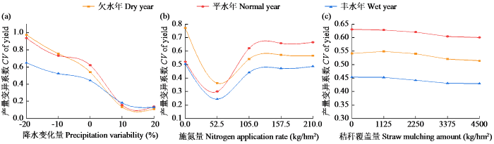 不同降水年型单因素作用下产量的变异系数