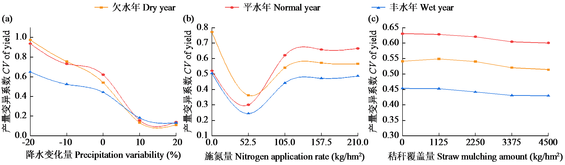 | 图2 不同降水年型单因素作用下产量的变异系数 |