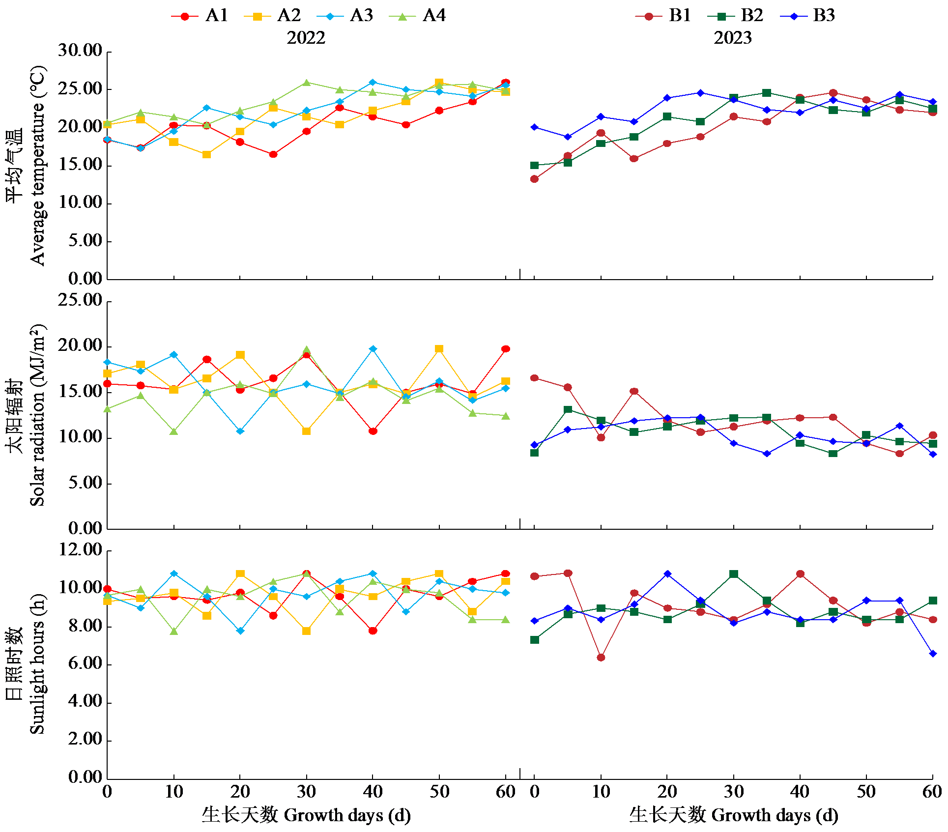 | 图1 不同移栽期下气象数据 |
