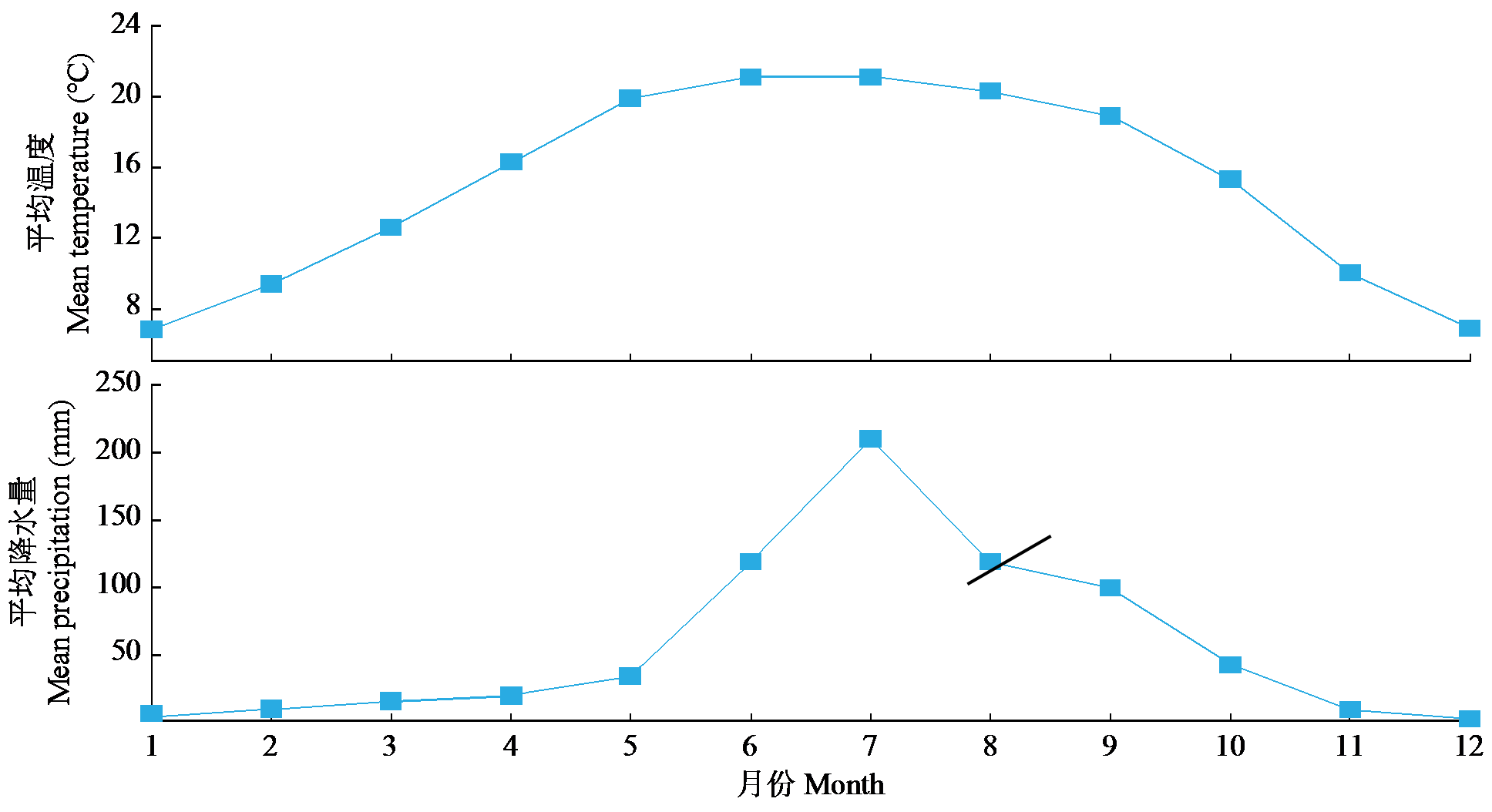 | Fig.1 Average temperature and precipitation in the test site |
