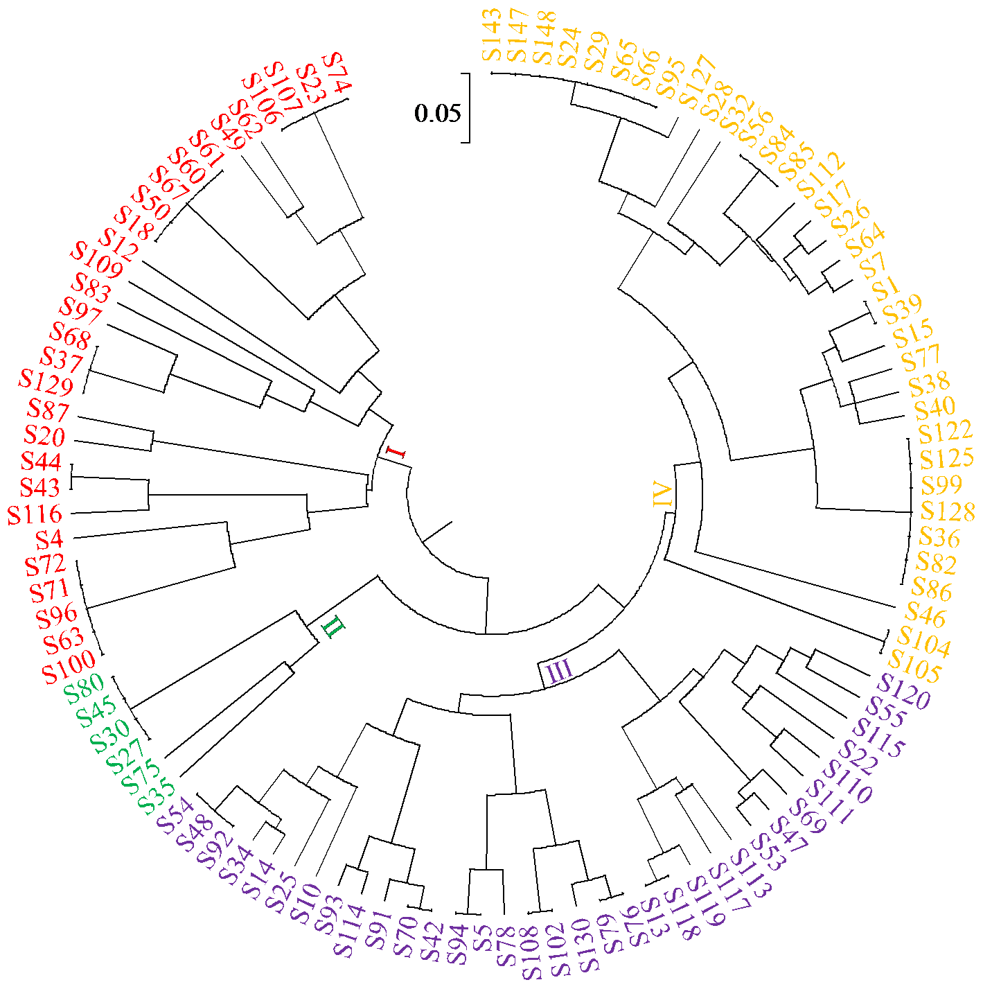 | 图1 104份苦荞种质资源UPGMA聚类分析 |