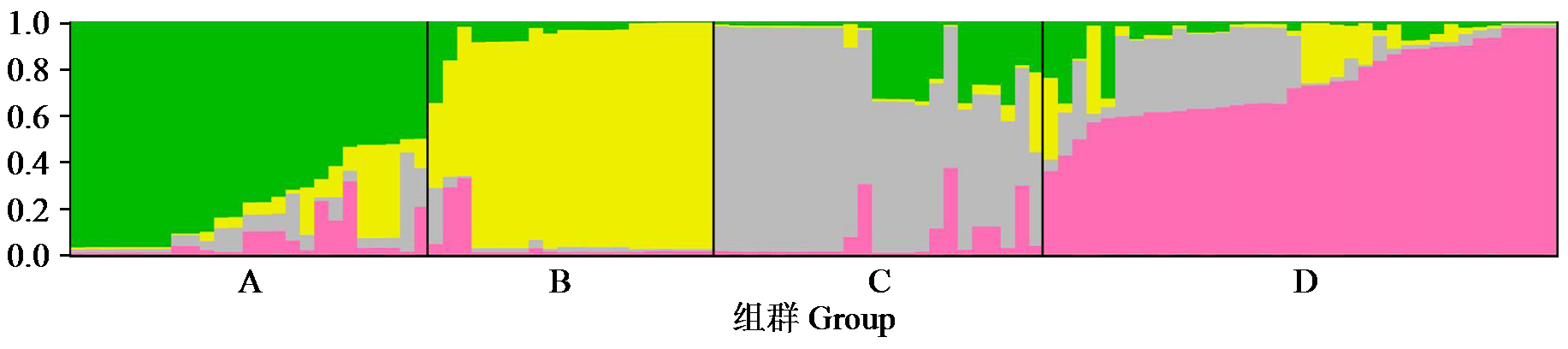 | 图3 104份苦荞种质资源群体遗传结构(K=4) |